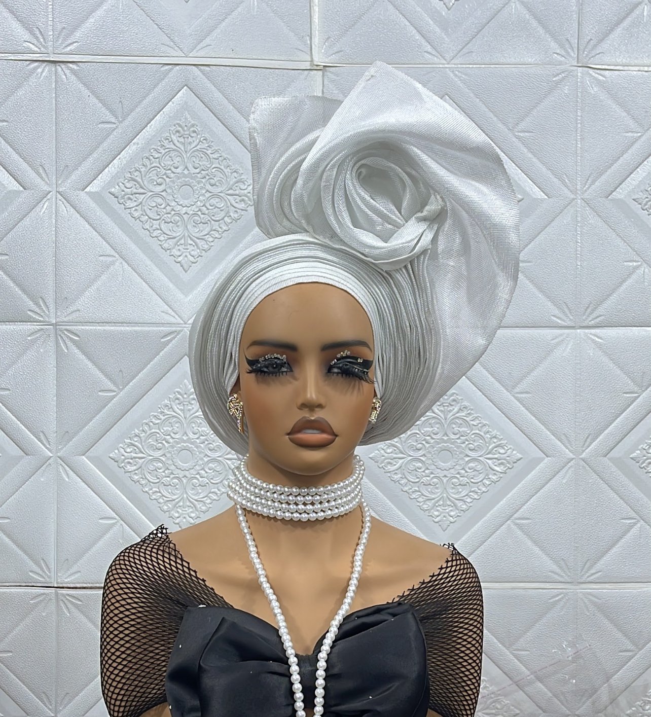 made with lush metallic Asooke with defined pleats and double PeaCocky high rose to give that elegant look