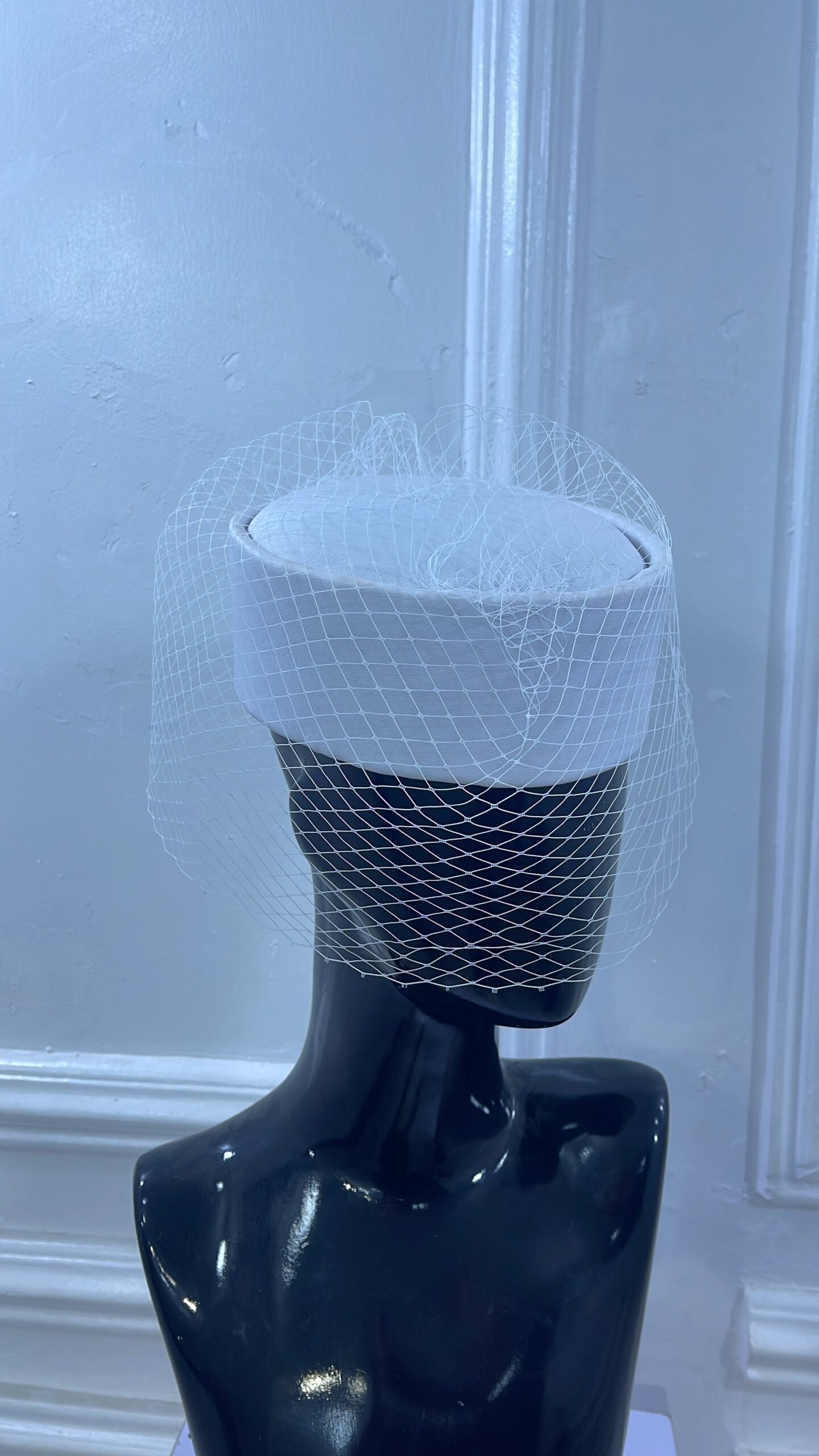 brimless gender neutral crepe hat with veiling for that Simple sophistication