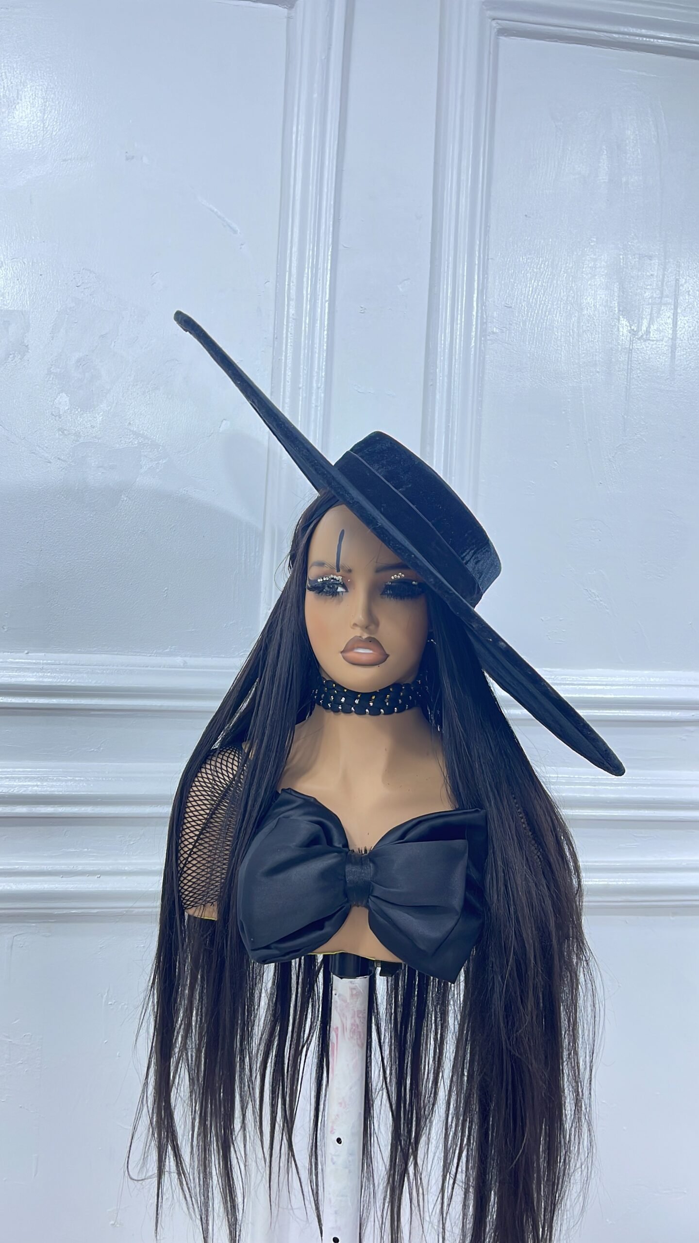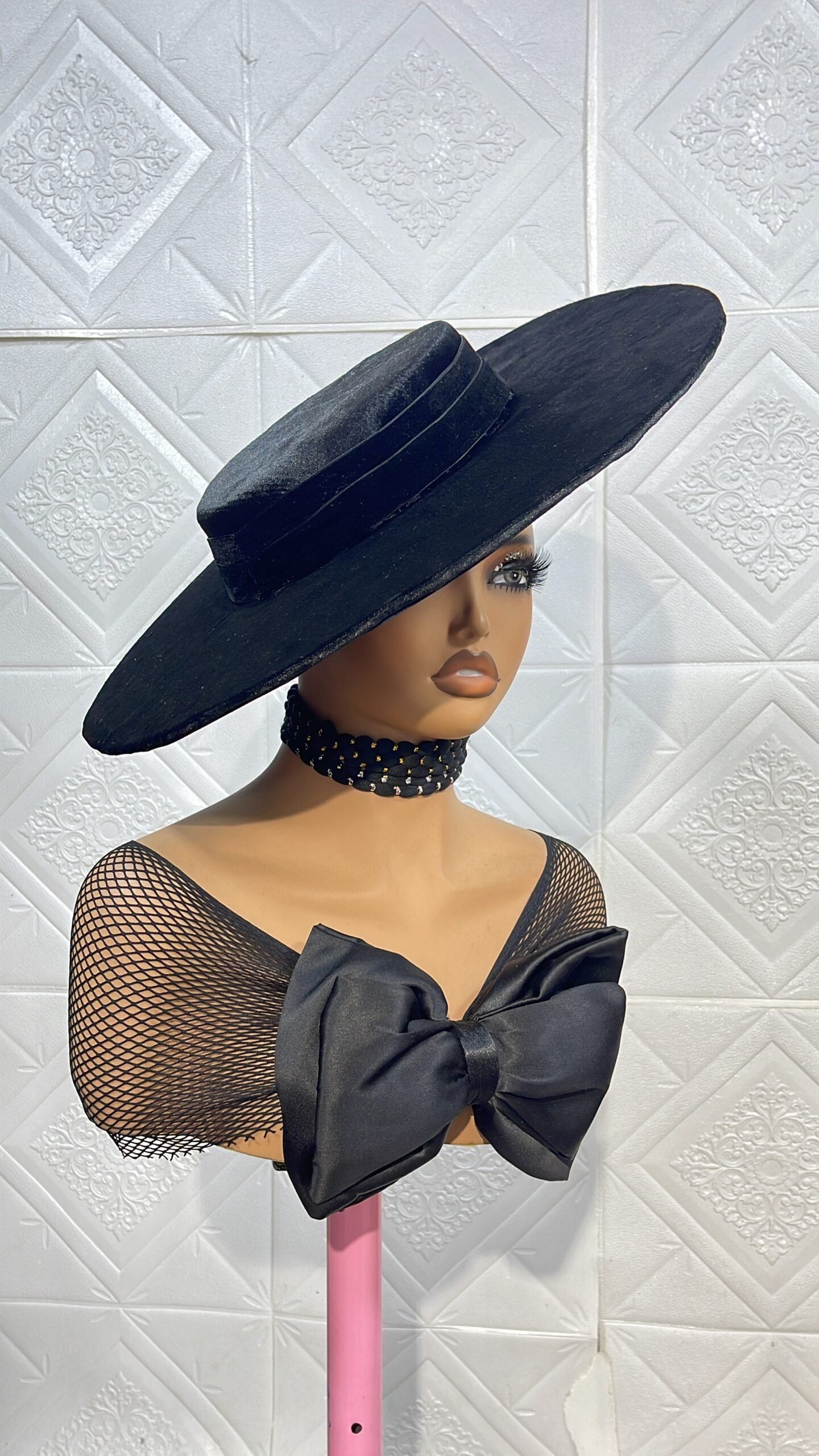 rich velvet wide brim hat with double velvet band for that glam look