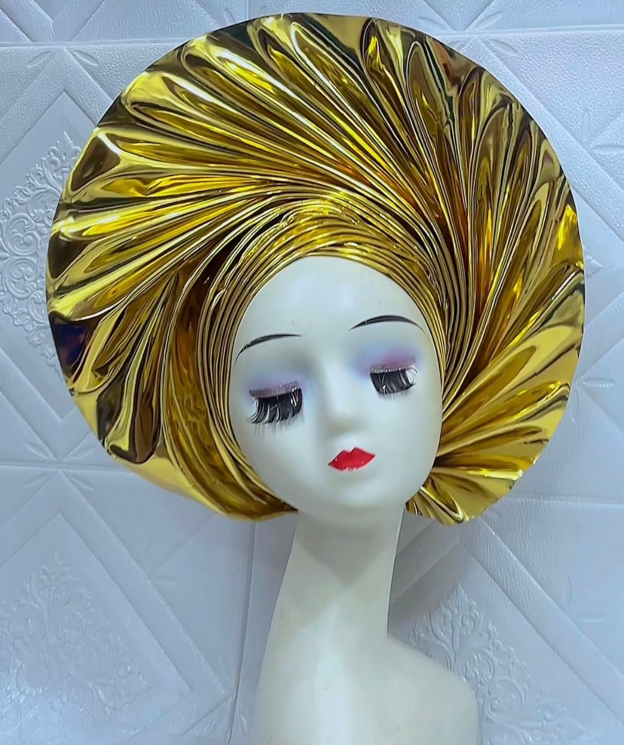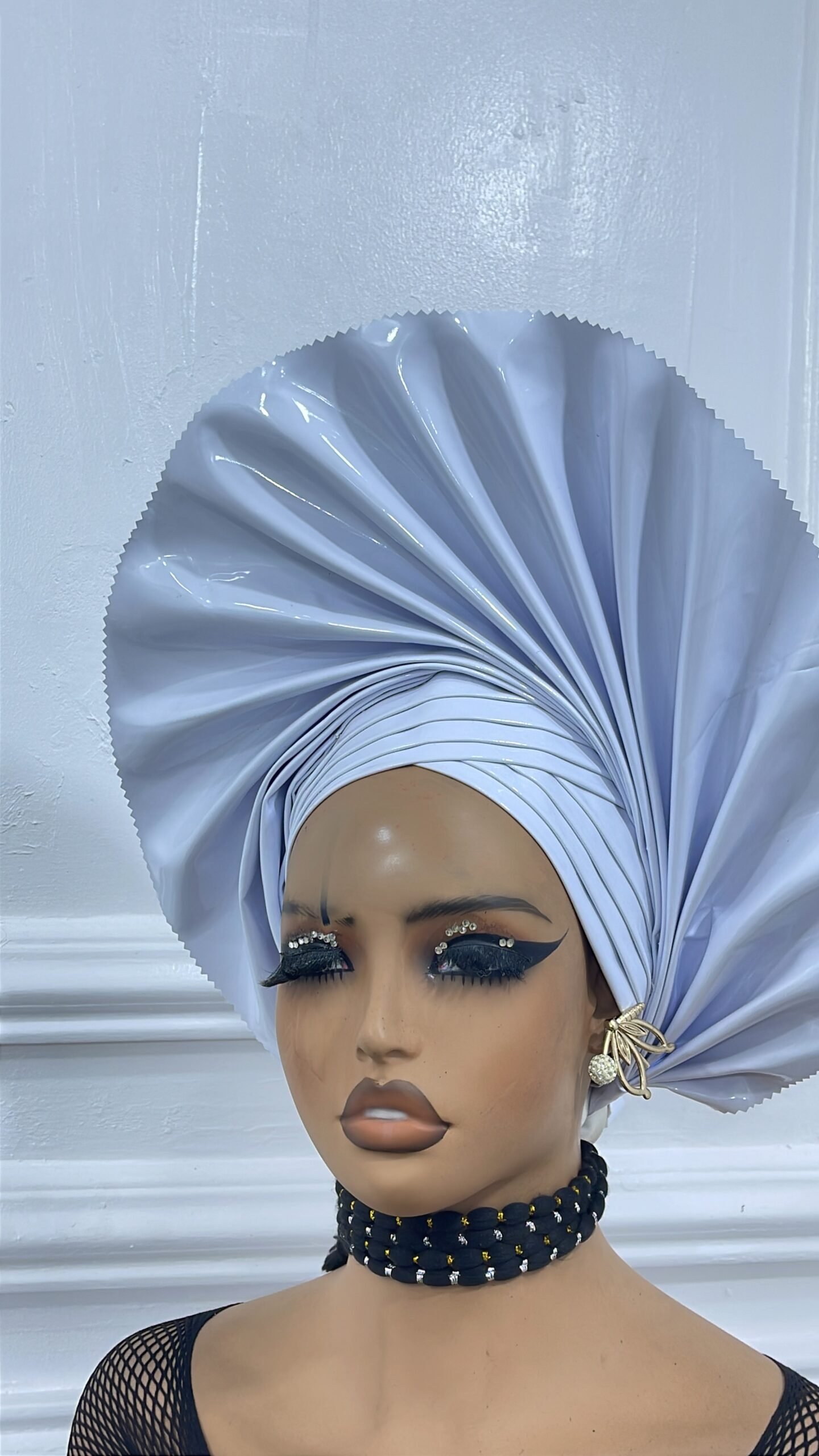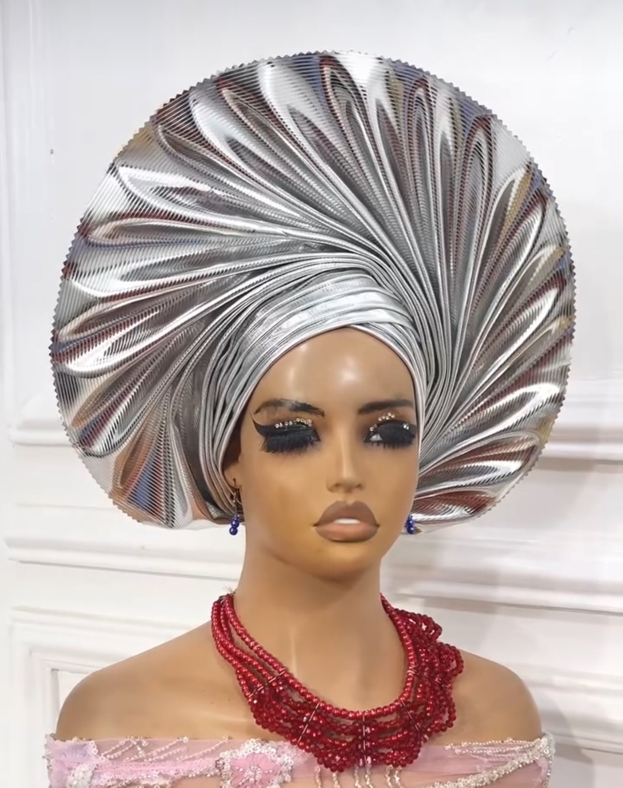 Made with lush metallic leather featuring fan out pleats