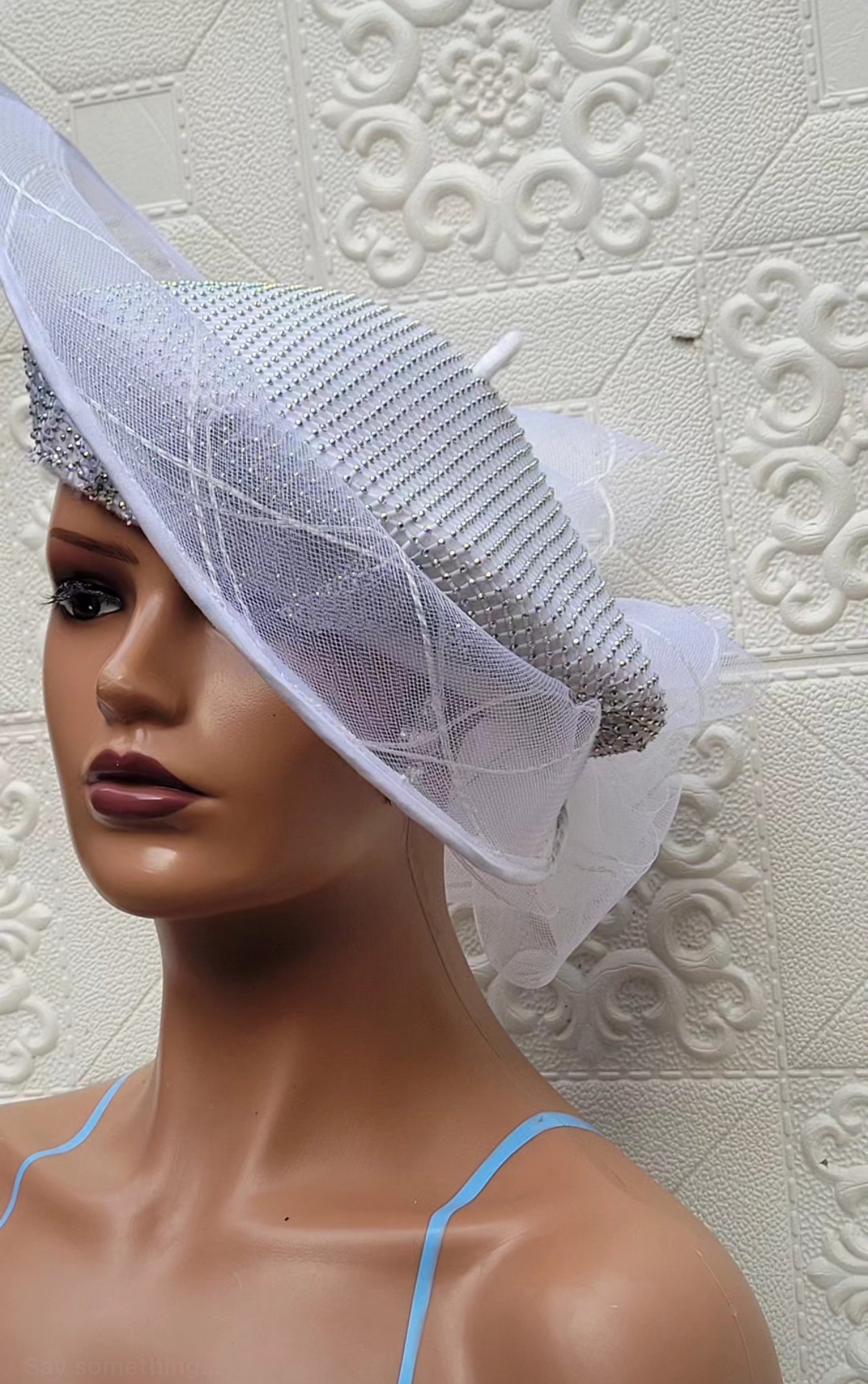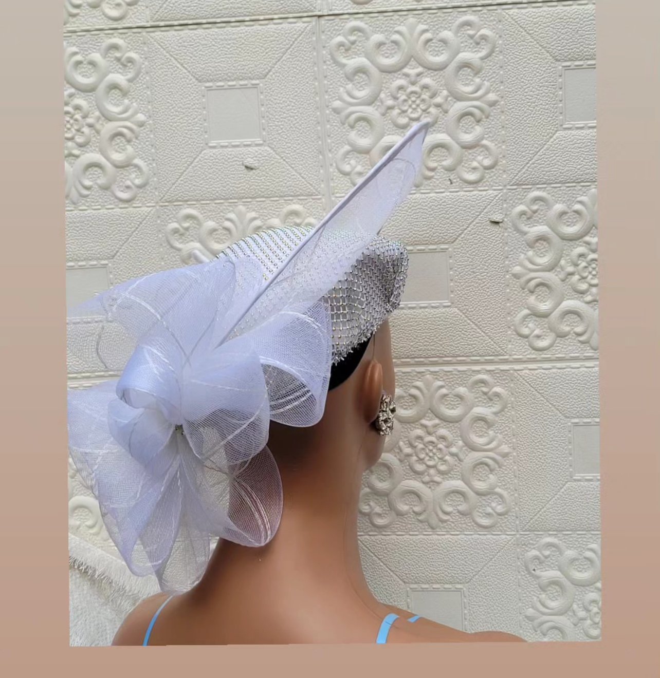 Hilda maxi beret, thick wool beret embellished with matching halo horsehair with back bows and overlaid rhinestones