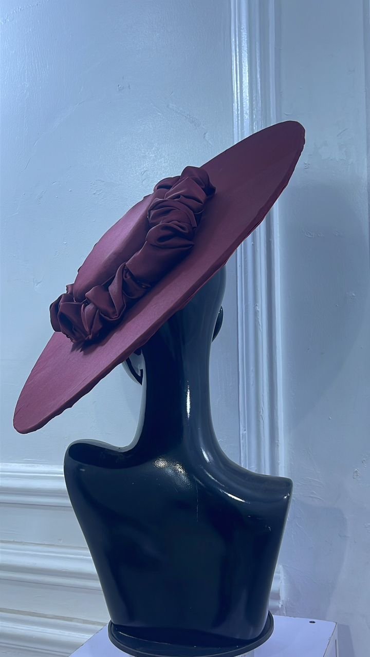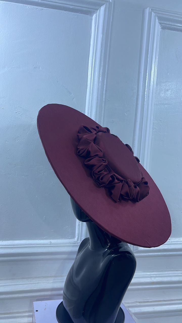 lush crepe wide brim hat with ruffled centre band for that glam look