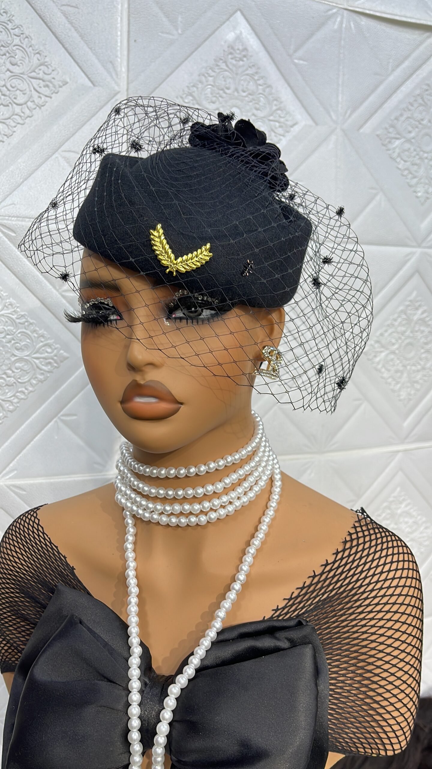 emirate felt hat with veiling and rose detail