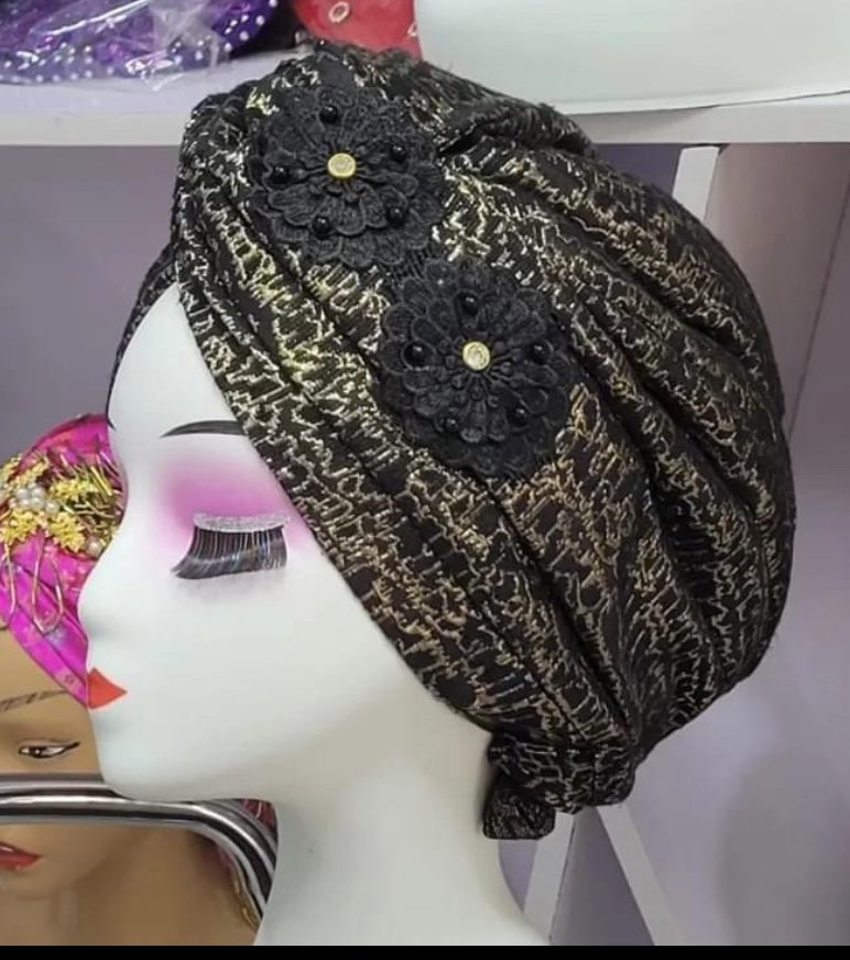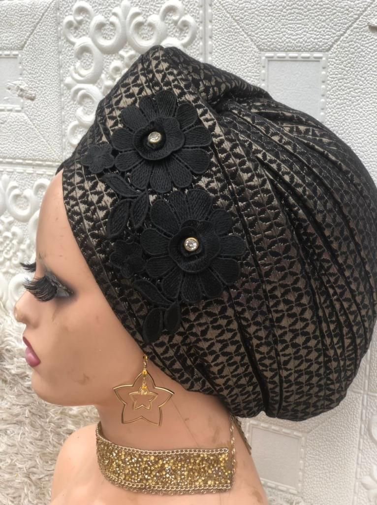 top knot embossed multi print turban with side applique detailing for that simple class