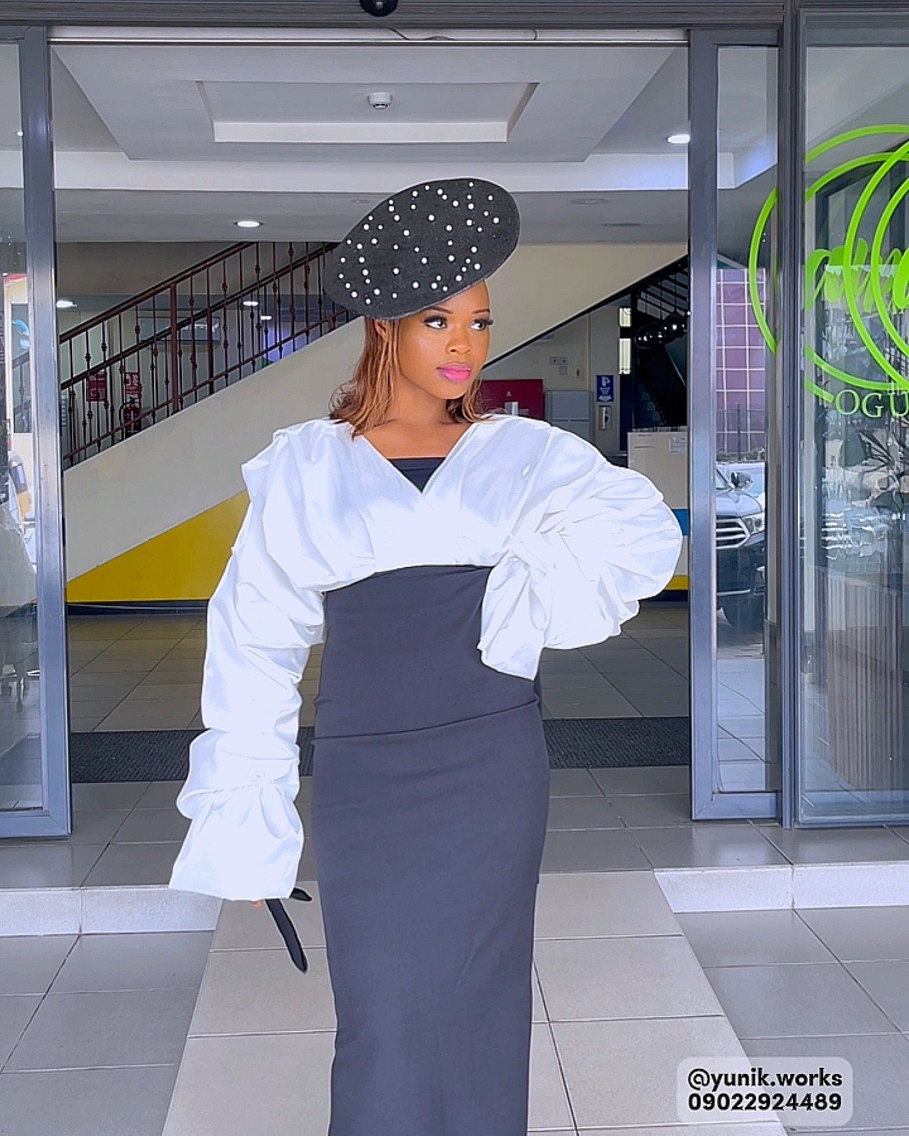 flat top pearl beaded hat with underneath cup fastened with Alice band
