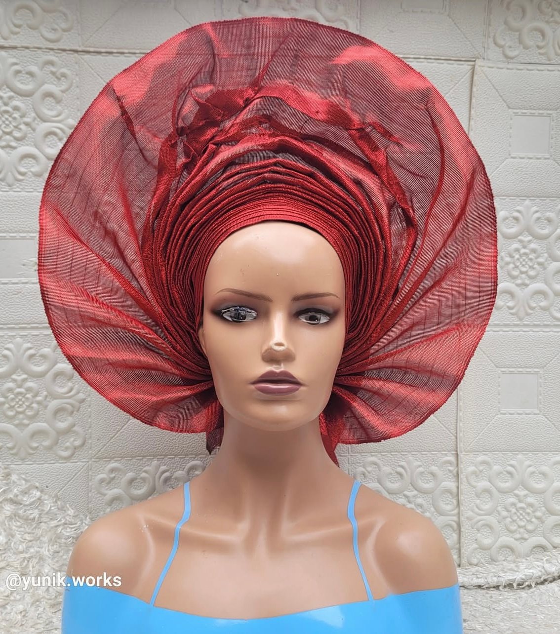 Comes with shoulder ipele, Made with lush metallic asooke featuring fan out high ruffled top ace to give you a grand entrance