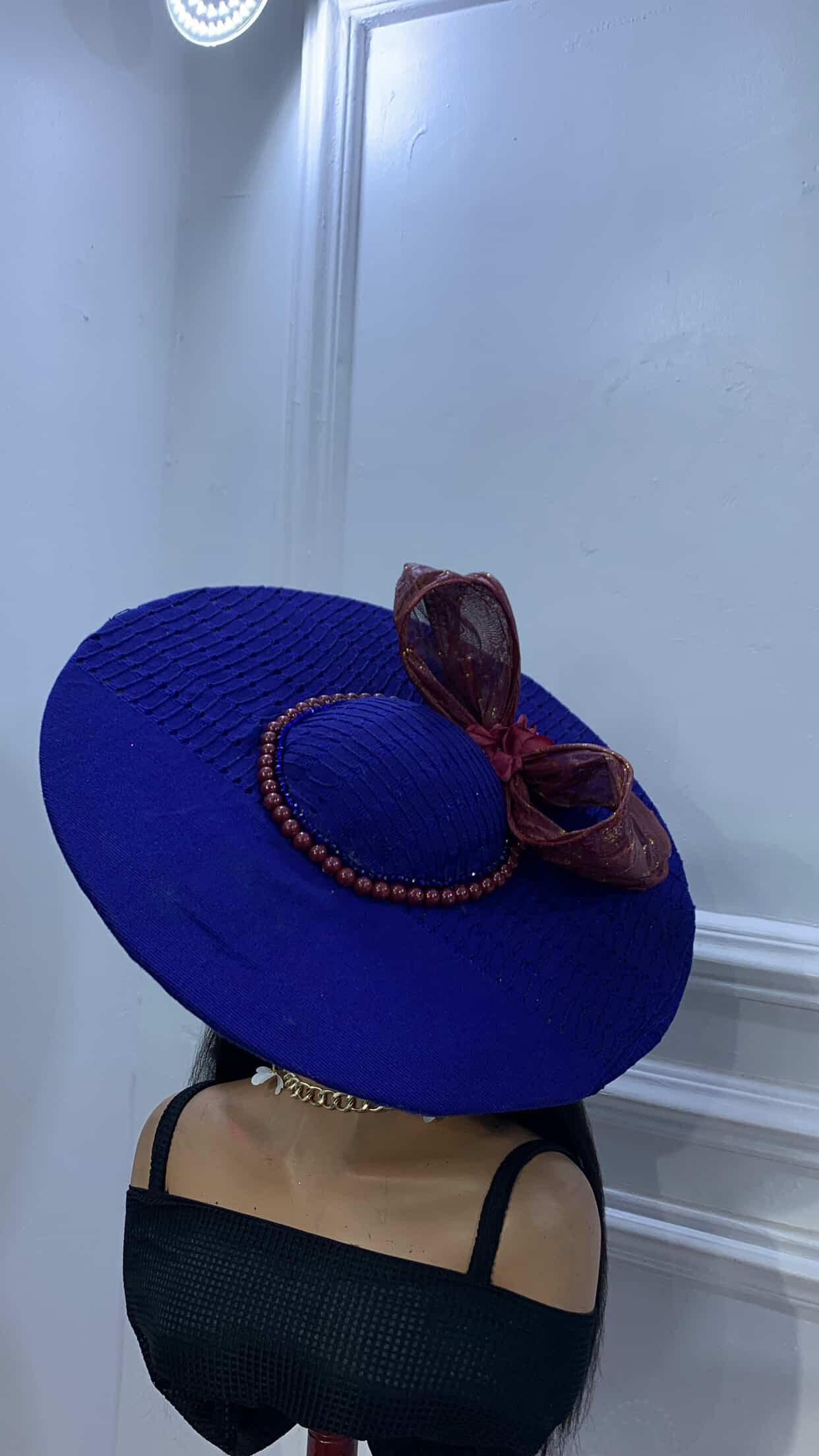 vintage jawu asooke wide brim hat with pear bead band and buntal bows for that stand out Owambe look