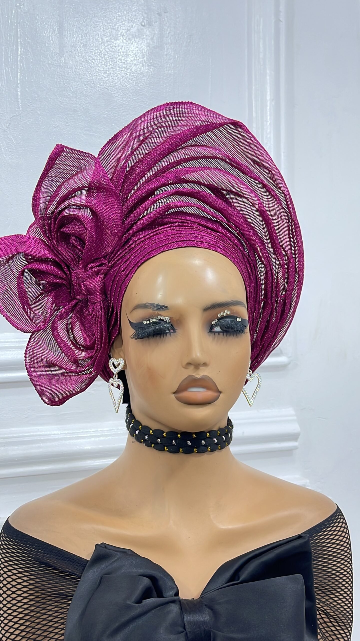 Comes with ipele, made with lush metallic Asooke with simple high pleats and side pointed bows to give that classy look