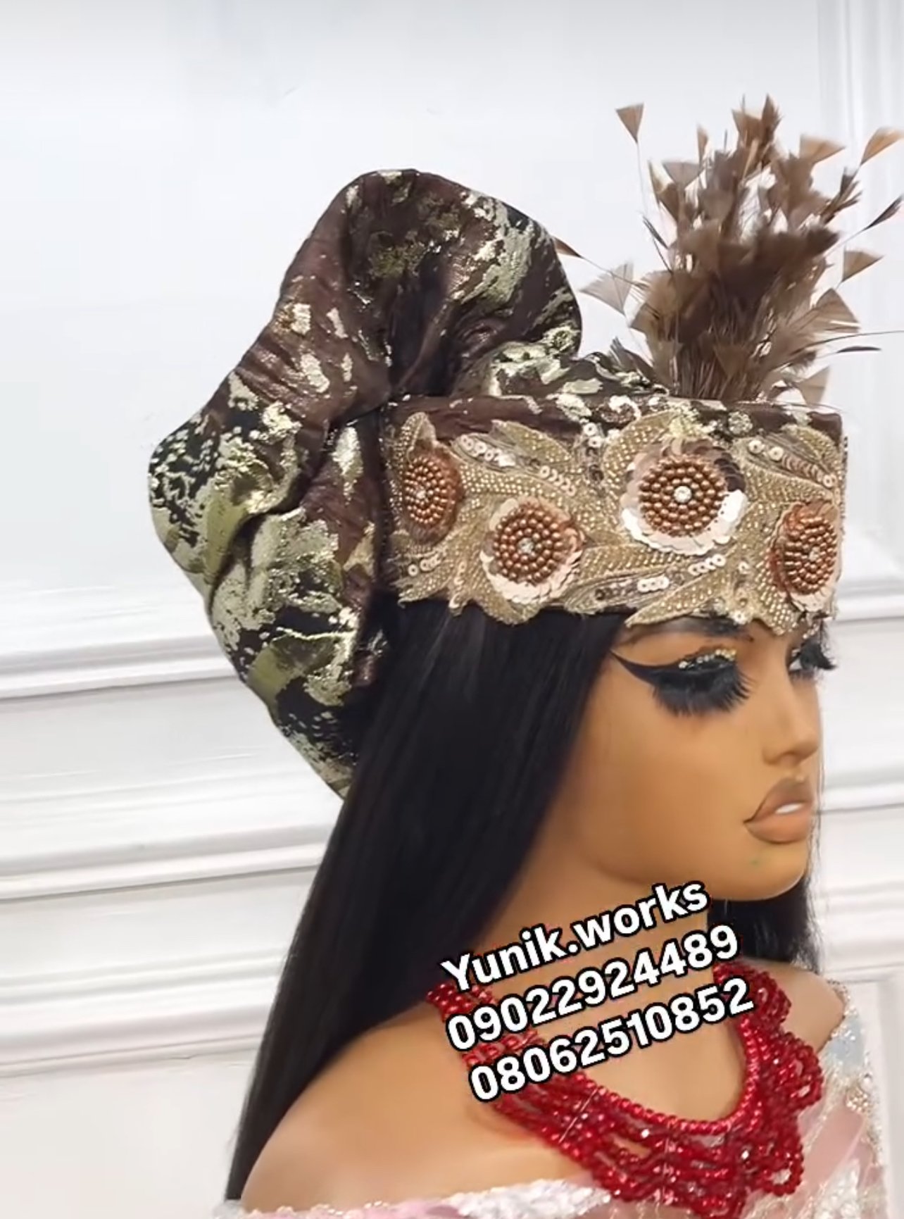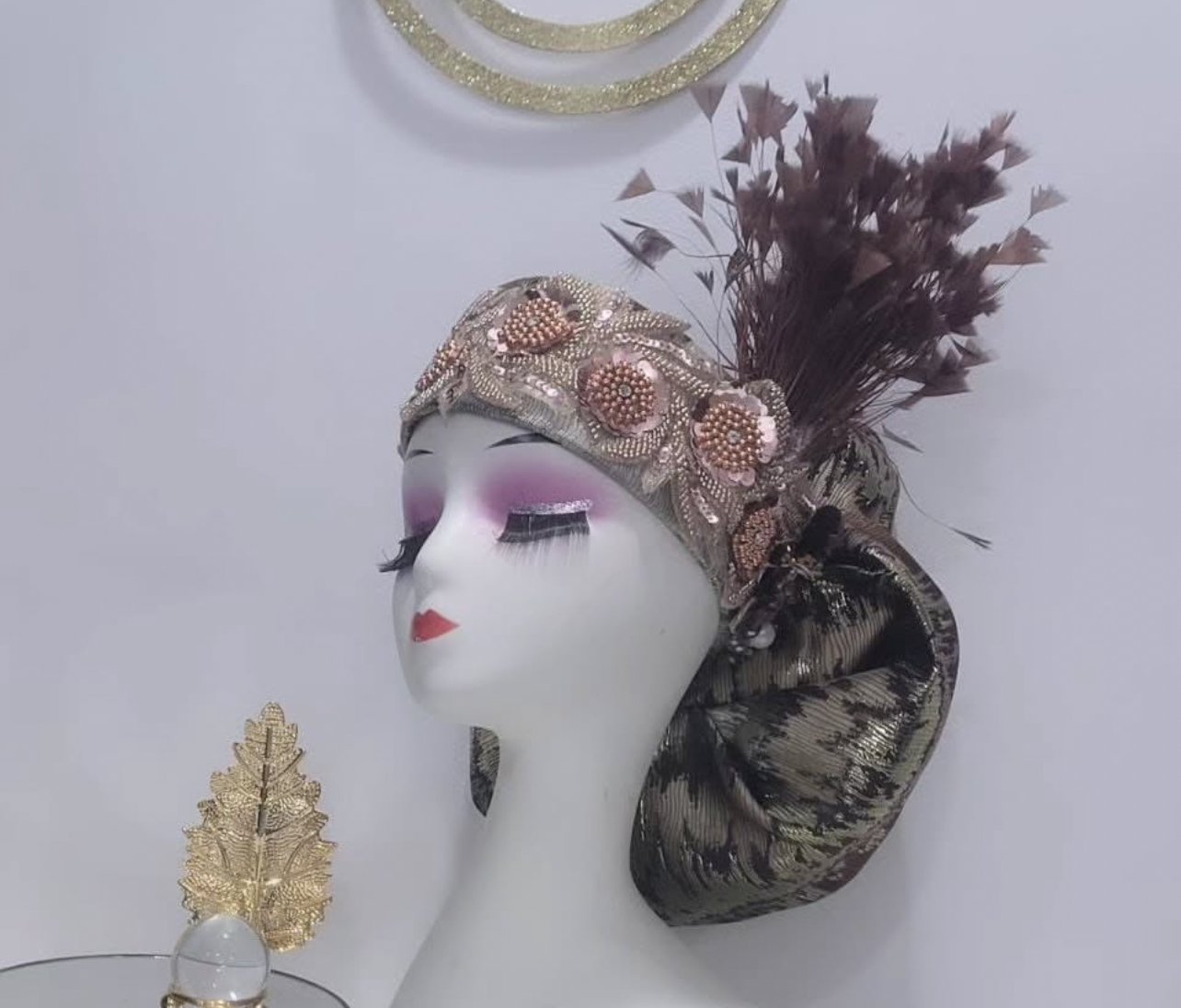 blended damask Zara with applique detailing with back canopy and feather embellishment