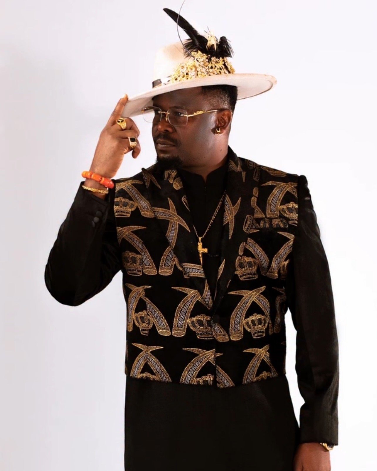 felt fedora hat with crystal and feather embellishments